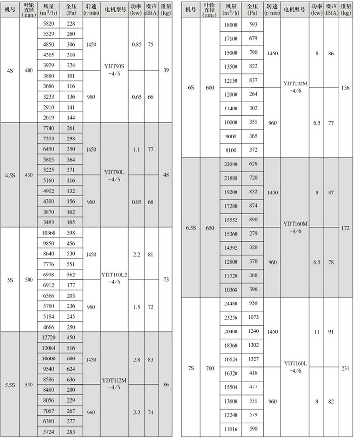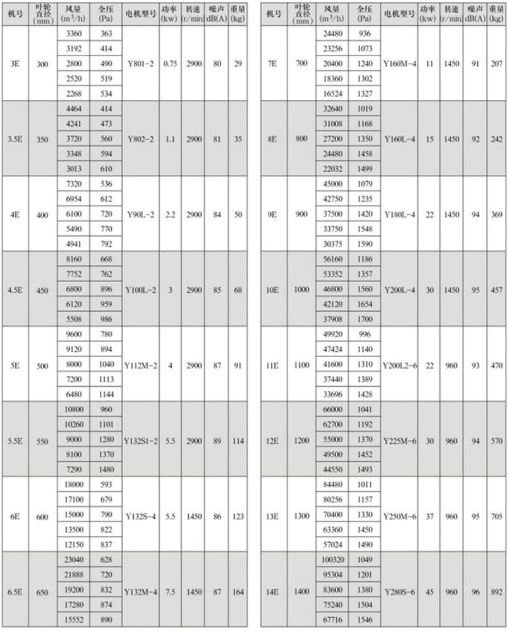 GXF系列斜流式通風(fēng)機(jī)是一種新型低噪高效節(jié)能型斜流式通風(fēng)機(jī),斜流式通風(fēng)機(jī)流量大于離心式風(fēng)機(jī),全壓高于軸流式風(fēng)機(jī),體積小于離心式風(fēng)機(jī),該風(fēng)機(jī)通過(guò)了模擬機(jī)的實(shí)驗(yàn)研究,采用新的葉型與葉片,從而得到了更大的流量和壓力, 提高了風(fēng)機(jī)的效率。 GXF系列斜流通風(fēng)機(jī)按葉輪直徑分為300-1400mm十六種規(guī)格,按類(lèi)型分A、B、C、D、E、F、S七種類(lèi)型,共五十八個(gè)機(jī)號(hào)。風(fēng)量由1500mm-90000m3/h,全壓由185-2500Pa;這樣就給設(shè)計(jì)部門(mén)和也難怪乎單位提供了充分的選擇條件,具體數(shù)據(jù)參照風(fēng)機(jī)性能參數(shù)表。 風(fēng)機(jī)材料有鋼制,玻璃鋼制作,亦可防爆制作。(采用防爆措施,配用鋁合金材料) GXF系列斜流式通風(fēng)機(jī)性能參數(shù)表 GXF-A型斜流式通風(fēng)機(jī)性能參數(shù)表 四、GXF系列斜流式通風(fēng)機(jī)外形及安裝尺寸(mm) GXF系列斜流式通風(fēng)機(jī)外形及安裝尺寸(A、B、C、D、E、F型) GXF系列斜流式通風(fēng)機(jī)是一種新型低噪高效節(jié)能型斜流式通風(fēng)機(jī),斜流式通風(fēng)機(jī)流量大于離心式風(fēng)機(jī),全壓高于軸流式風(fēng)機(jī),體積小于離心式風(fēng)機(jī),該風(fēng)機(jī)通過(guò)了模擬機(jī)的實(shí)驗(yàn)研究,采用新的葉型與葉片,從而得到了更大的流量和壓力, 提高了風(fēng)機(jī)的效率。 GXF系列斜流通風(fēng)機(jī)按葉輪直徑分為300-1400mm十六種規(guī)格,按類(lèi)型分A、B、C、D、E、F、S七種類(lèi)型,共五十八個(gè)機(jī)號(hào)。風(fēng)量由1500mm-90000m3/h,全壓由185-2500Pa;這樣就給設(shè)計(jì)部門(mén)和也難怪乎單位提供了充分的選擇條件,具體數(shù)據(jù)參照風(fēng)機(jī)性能參數(shù)表。 風(fēng)機(jī)材料有鋼制,玻璃鋼制作,亦可防爆制作。(采用防爆措施,配用鋁合金材料) GXF系列斜流式通風(fēng)機(jī)性能參數(shù)表 GXF-A型斜流式通 GXF-B型斜流式通風(fēng)機(jī)性能參數(shù)表 GXF-C型斜流式通風(fēng)機(jī)性能參數(shù)表 GXF-D型斜流式通風(fēng)機(jī)性能參數(shù)表 GXF-E型斜流式通風(fēng)機(jī)性能參數(shù)表 GXF-F型斜流式通風(fēng)機(jī)性能參數(shù)表 GXF-S型雙速斜流式通風(fēng)機(jī)性能參數(shù)表(1) GXF-S型雙速斜流式通風(fēng)機(jī)性能參數(shù)表(2) GXF系列斜流式通風(fēng)機(jī)外形及安裝尺寸(mm) GXF系列斜流式通風(fēng)機(jī)外形及安裝尺寸(A、B、C、D、E、F型) GXF-S系列雙速斜流式通風(fēng)機(jī)外形及安裝尺寸 GXF-BX消聲型斜流風(fēng)機(jī) GXF-BX1消聲型斜流風(fēng)機(jī)安裝尺寸(mm) GXF-BX2消聲型斜流風(fēng)機(jī)安裝尺寸(mm)